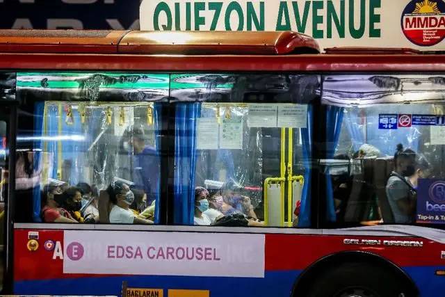 2021年8月23日,人们佩戴口罩在菲律宾奎松城乘坐公交车。新华社发(乌马利摄)