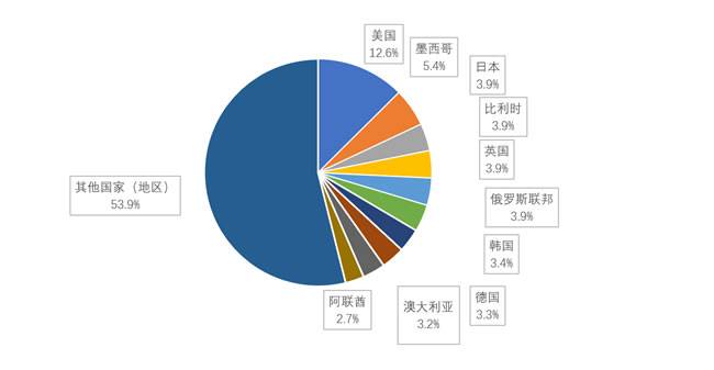2022年1-10月,上述十国汽车商品累计出口金额599.3亿美元,占全部汽车商品出口总额的46.1%。