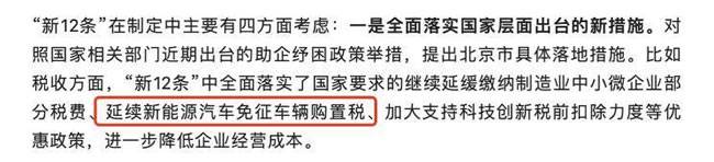 今年6月,国务院常务会议提出,考虑当前实际研究免征新能源汽车购置税政策延期问题;9月26日,财政部发布消息称,为支持新能源汽车产业发展,促进汽车消费,财政部、税务总局、工信部联合就延续新能源汽车免征车辆购置税政策发布公告,对购置日期在2023年1月1日-12月31日期间内的新能源汽车,免征车辆购置税。此次北京市政府发布的《北京市积极应对疫情影响助企纾困的若干措施》,让北京新能源汽车免征购置税利好政策正式落地。