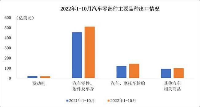 12月8日,据中国汽车工业协会整理的海关总署数据显示,2022年1-10月,汽车零部件出口金额765.9亿美元,同比增长11.7%,占汽车商品出口总额的58.9%。在汽车零部件主要出口品种中,与上年同期相比,发动机出口金额小幅下降,其他三大类汽车零部件品种继续保持增长。