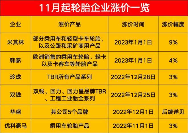 【多家轮胎企业宣布,2023年开启涨价模式】