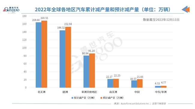 芯片短缺已经持续了整整两年。根据AFS的数据,这两年全球已减产约1490万辆汽车。AFS预计,由于芯片供应不足,今年全球汽车市场累计减产量将攀升至456万辆。自芯片危机以来,全球汽车市场累计减产量可能会突破1,500万辆。对于全球汽车行业来说,这是非常大的损失。