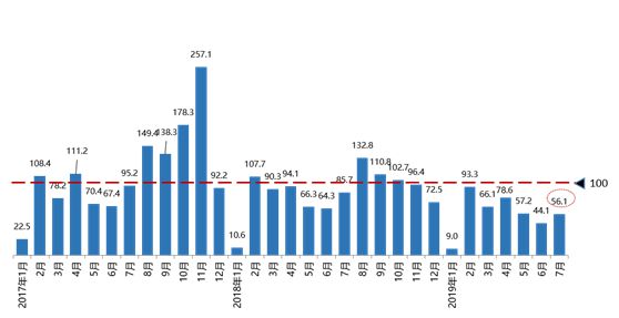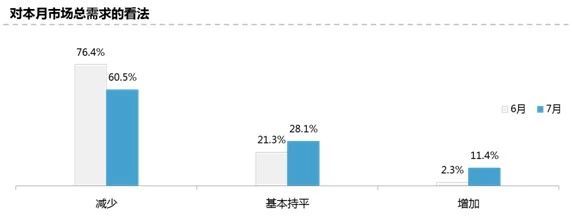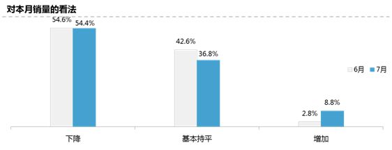 2019年7月份需求分指数为56.1;入店分指数为52.4;购买分指数为57.1。在国五国六切换期间,打折促销集中清库存提前透支了大部分市场需求,切换完成后汽车价格有所回升,消费需求减少。淡季促销活动,以及国六车型上市之后的价格变动较多,客户呈持币观望态度,购车意愿不强。(数据来源:中国汽车流通协会)