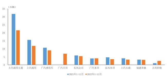 据中国汽车工业协会统计分析,2022年1-11月,销量排名前十位的MPV生产企业共销售71.1万辆,占MPV销售总量的84.9%。