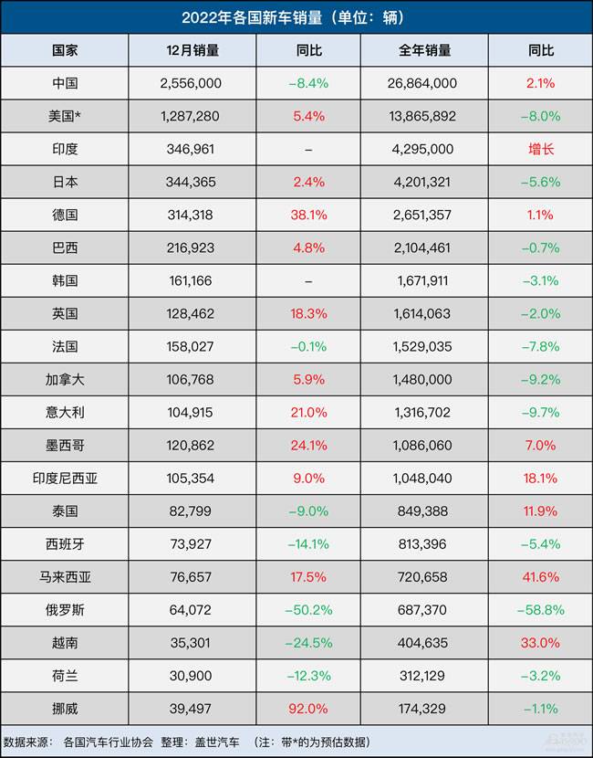 2022年全球车市:中国连续14年稳居第一,印度超日本成第三大车市