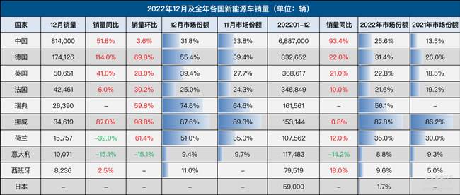 2022年新能源车市:中国强势领涨,稳居全球第一