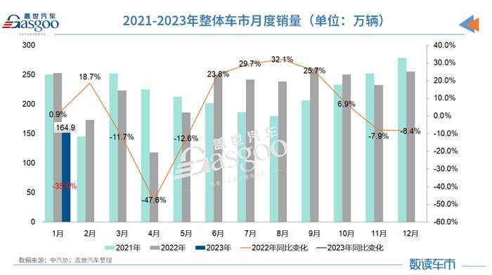 受传统燃油车购置税优惠政策和新能源汽车补贴等政策退出、年末厂家冲量效应,消费者提前透支部分需求;同时叠加今年春节假期提前至1月,企业生产经营时间减少等因素影响,2023年开局,我国汽车产销量环比、同比均呈现两位数下滑。