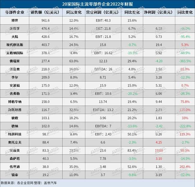 【20家国际零部件企业2022年财报解读:营收普涨,利润仍拉垮】