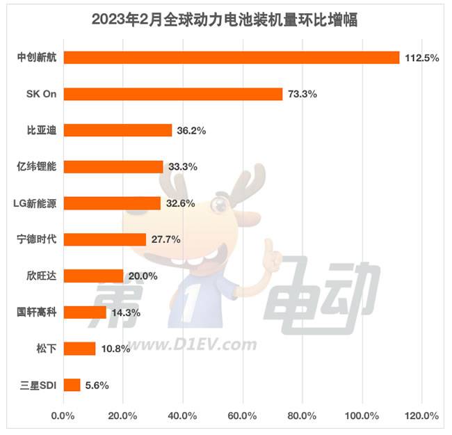 环比来看,得益于埃安等车企销量的大幅增长,中创新航环比增幅最大达112.5%,其次是SK On环比增幅超70%。宁德时代、比亚迪、LG新能源、亿纬锂能、欣旺达环比增长均超20%,松下、国轩高科环比增长超10%,三星SDI微涨5.6%。