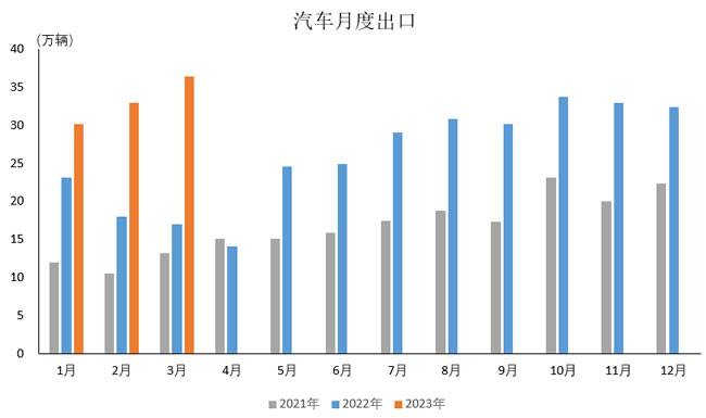 据中国汽车工业协会统计分析,2023年3月,汽车出口延续了去年强势出口的态势,今年以来增速不断攀升。