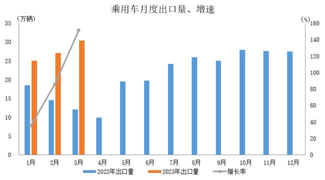 2023年1-3月,乘用车出口82.6万辆,同比增长82.9%。
