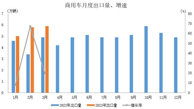 2023年3月,商用车出口5.9万辆,环比增长2.6%,同比增长19.8%。