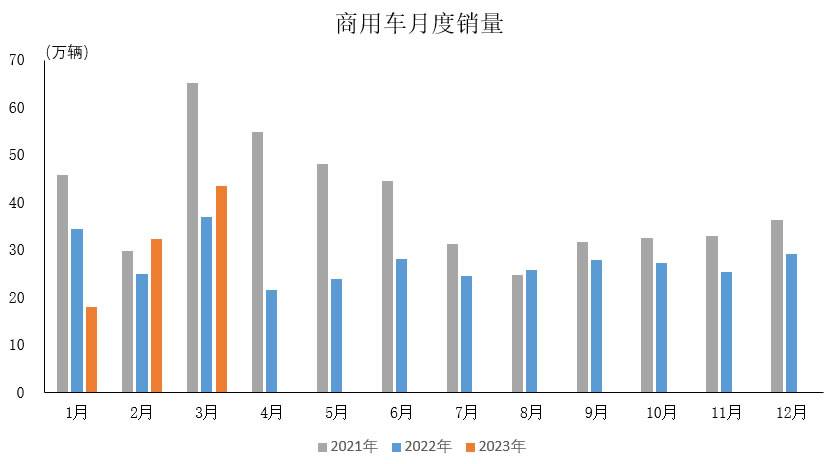 2023年3月,商用车产销均完成43.4万辆,环比分别增长37.1%和34.2%,同比分别增长20.4%和17.4%。