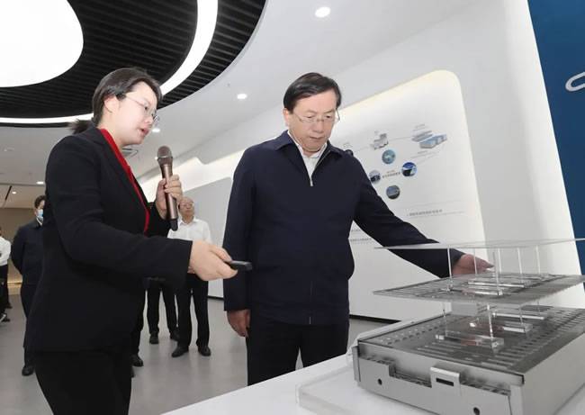 随后,王忠林一行实地参观了中创新航高度智能化数字化产线,详细观看动力电池生产流程和关键工序情况,全面了解了公司极简制造、极限制造、智能制造和绿色低碳制造能力。