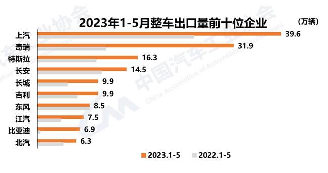 2023年1-5月,汽车企业出口175.8万辆,同比增长81.5%。