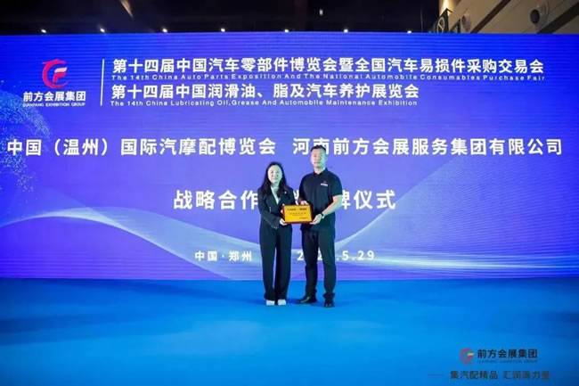 5月29日,在郑州“第十四届中国汽车零部件博览会暨全国汽车易损件采购交易会”上,温州汽配展以“展中会”形式举办“2023温州汽配展郑州推介会”。活动现场,针对温州汽配招商邀观活动的合作,中国(温州) 国际汽摩配博览会与河南前方会展服务集团有限公司达成了战略合作伙伴,于现场举行了颁发仪式。未来双方将进一步深化务实合作,持续推动双方发展布局优化和资源深度挖掘,实现互利共赢协同高质量发展。