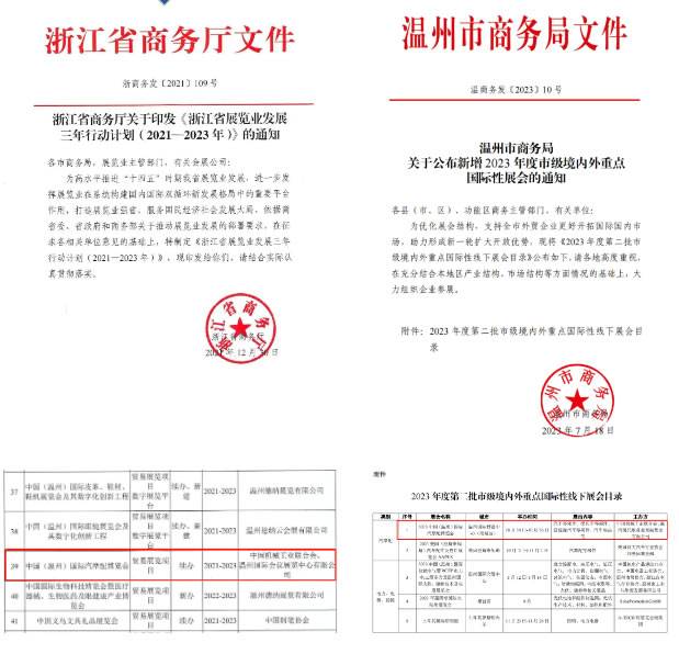 “中国(温州)国际汽摩配博览会”被浙江省商务厅和温州市商务局分别列为:2021-2023年浙江省重点展览和温州市境内外重点国际性线下展会!据了解,截至目前,温州汽配展是浙江省内唯一获省级重点和市级重点的汽配类专业展。