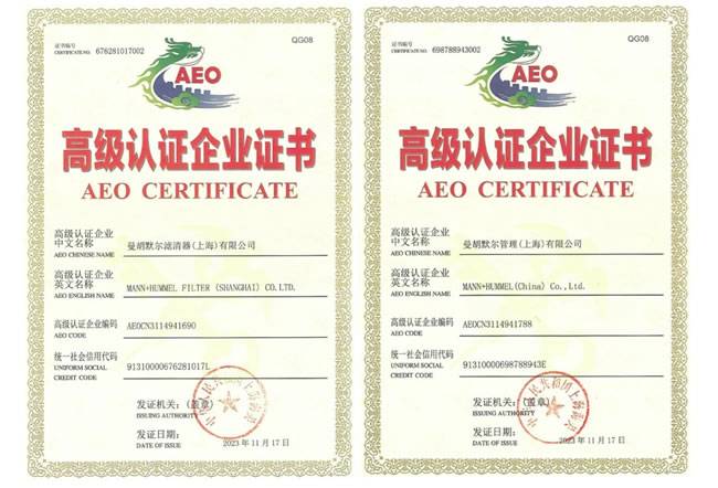 【曼胡默尔集团荣膺AEO高级认证】