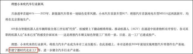 7、宁德时代回应开建北京工厂,为小米、理想供应电池