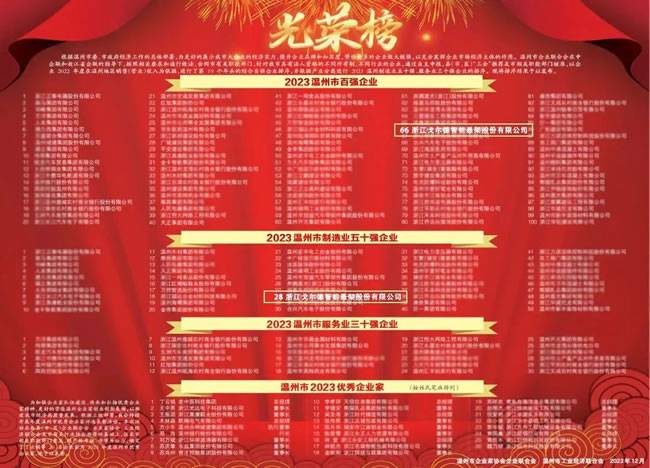 9、戈尔德荣获2023温州市综合百强企业等殊荣,引领行业风向标