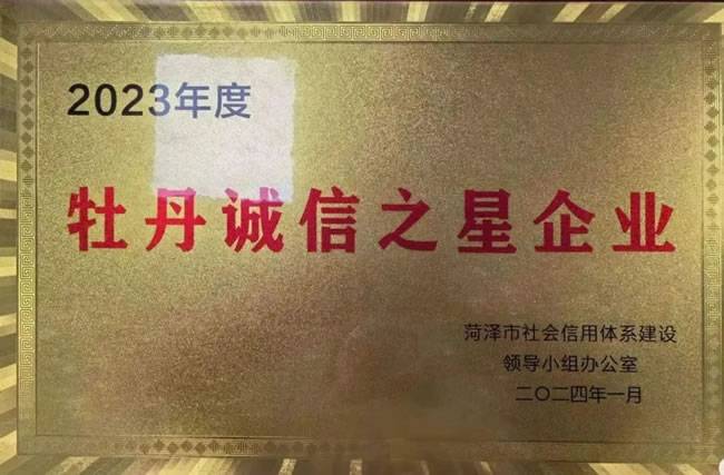 【山东锂源荣获2023年度菏泽市“牡丹诚信之星”企业】