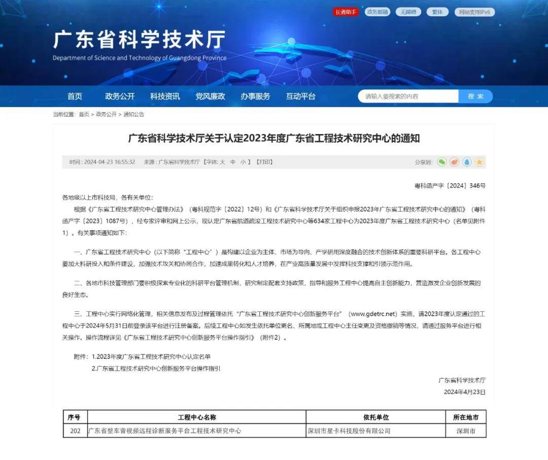 近日,根据《广东省工程技术研究中心管理办法》和《广东省科学技术厅关于组织申报2023年广东省工程技术研究中心的通知》,经专家评审和网上公示等程序,星卡科技成功获得“广东省工程技术研究中心”资格认定。