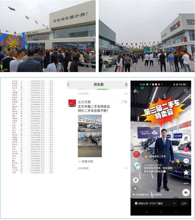 领骏车汇李总:我们2023年入驻五方天雅,五方天雅一直大力推广二手车经营区,无论在环境、消防还是门头、招牌、装修、街道都在不断升级。经常举办各种优惠活动,本次活动期间,五方天雅投入几十万元通过线上抖音、朋友圈等推广为我们二手车经营企业收集了大量的客户信息,我们积极做好回访、预约等跟进服务,效果非常好,感谢五方天雅的大力支持。