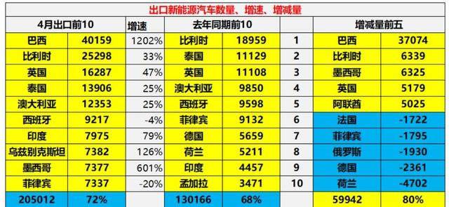 6、巴西超越比利时成中国新能源汽车最大出口市场