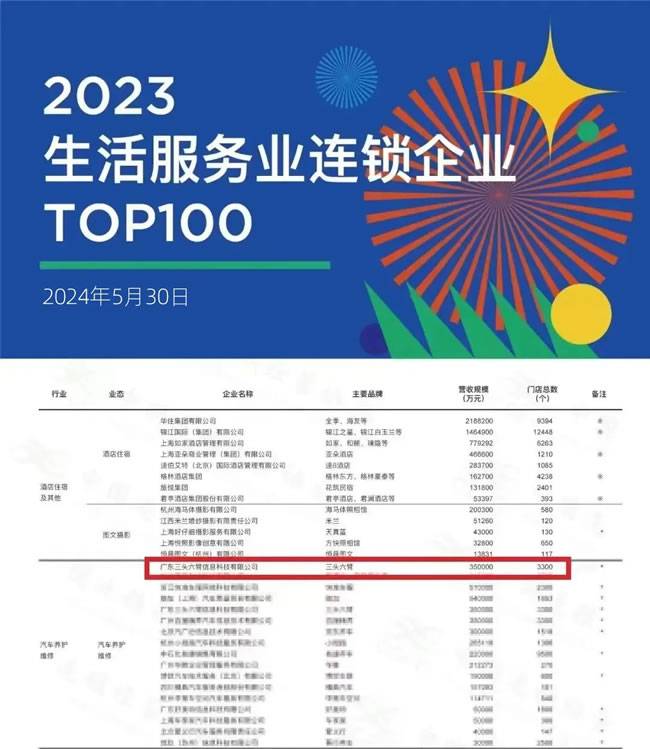 【2023年生活服务业连锁企业TOP100正式发布,三头六臂上榜】