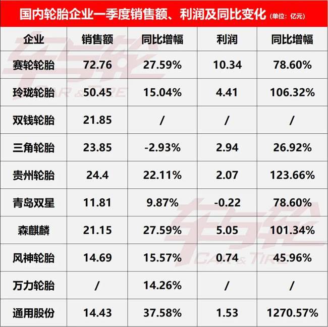 从一季度利润来看,除了固特异、双星及泰丰轮胎外,其余企业均取得了正增长。