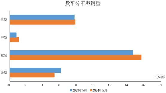 2024年1-5月,商用车产销分别完成167.5万辆和173.1万辆,同比分别增长3.1%和7.1%。