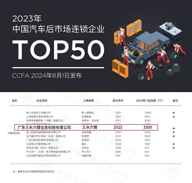 【三头六臂再次上榜2023中国汽车后市场连锁企业TOP50】