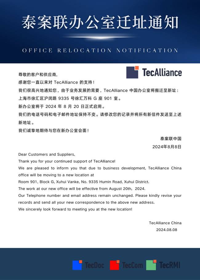 8月8日,泰案联发布办公室迁址通知,具体如下: