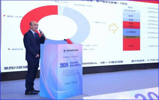东风商用车有限公司大数据分析总监黄正寅作了《数字化主动服务助力东风商用车后市场高质量发展》的主题演讲,他介绍了运用数字化主动服务,通过车联网系统和大数据分析提升商用车后市场服务的有关情况。