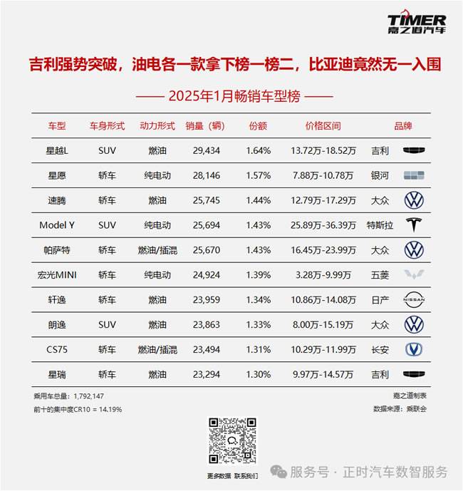 【2025年1月畅销车型榜】