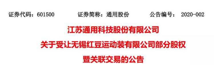 导读:2月11日通用股份公告称,拟以0元交易对价受让无锡红豆运动装有限公司(“运动装公司”)的20%股权(对应认缴出资2000万元,实缴出资0元)。