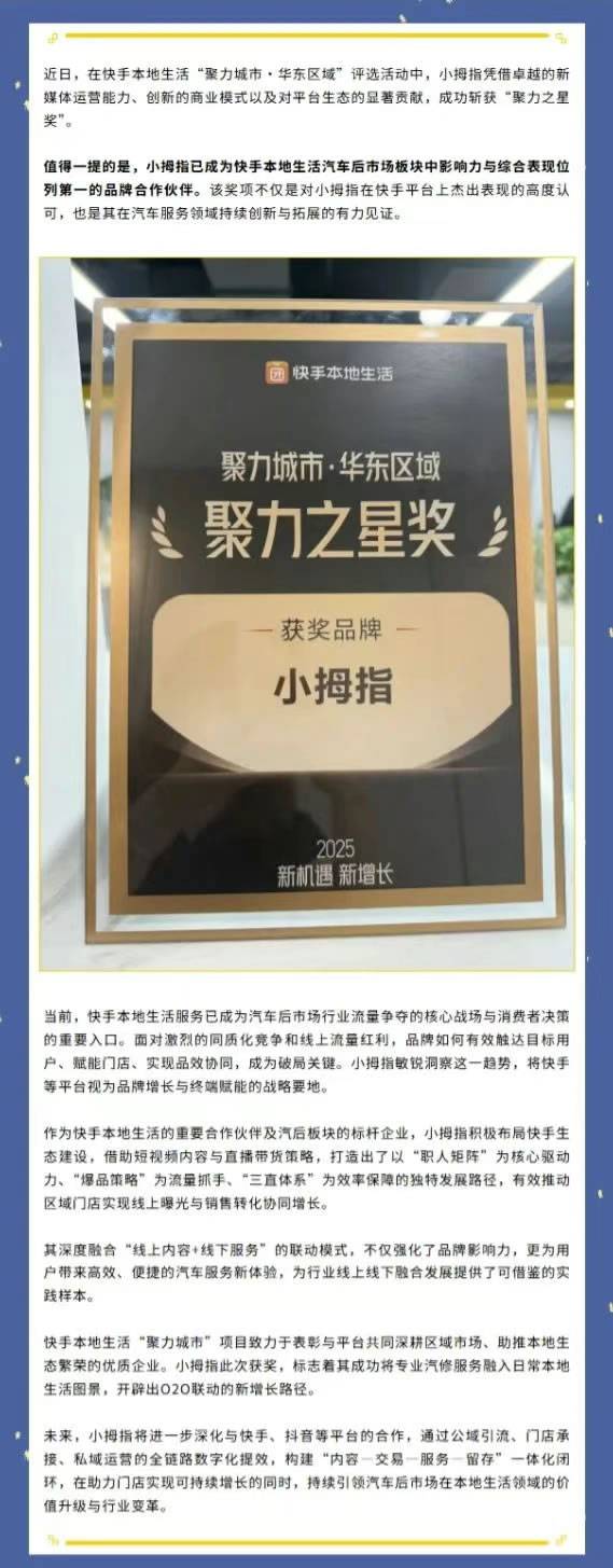 · 小拇指斩获快手本地生活“聚力之星奖”