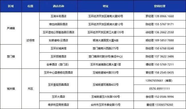 如需预订酒店,可拨打以下营销经理电话选择入住。