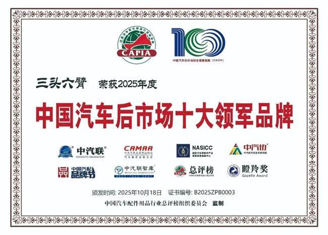 三头六臂荣获“2025中国汽车后市场十大领军品牌”荣誉。作为汽配供应链连锁平台,三头六臂自2015年成立以来,始终坚守将自主品牌发扬光大的初心,以“供方严选”为核心策略,从产品到服务落地构建全链路竞争力。