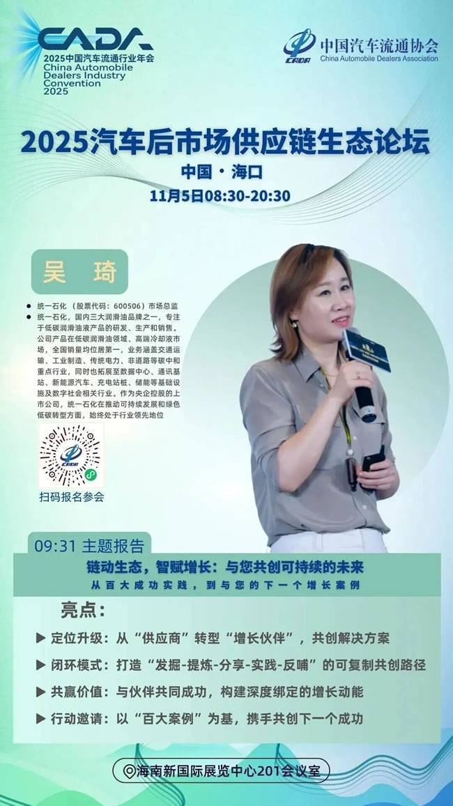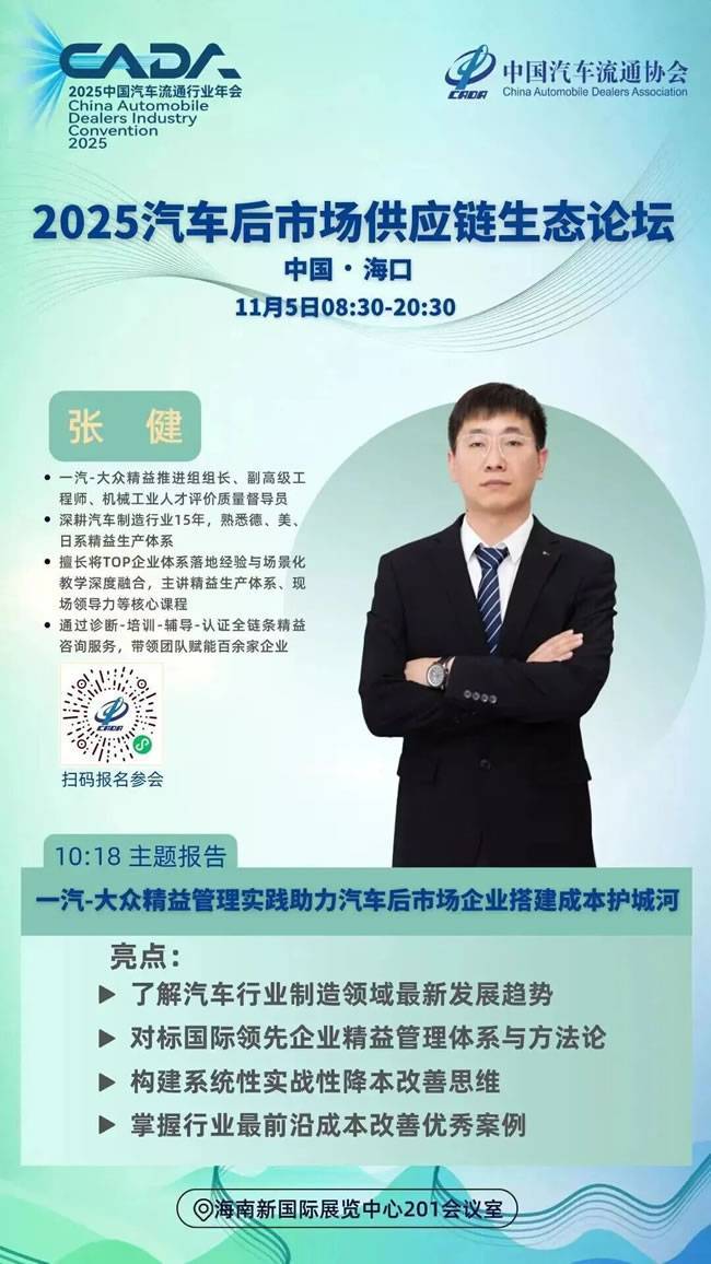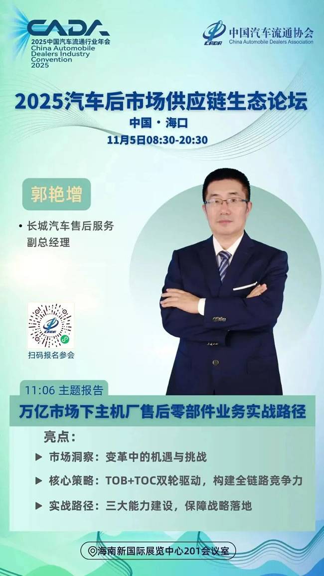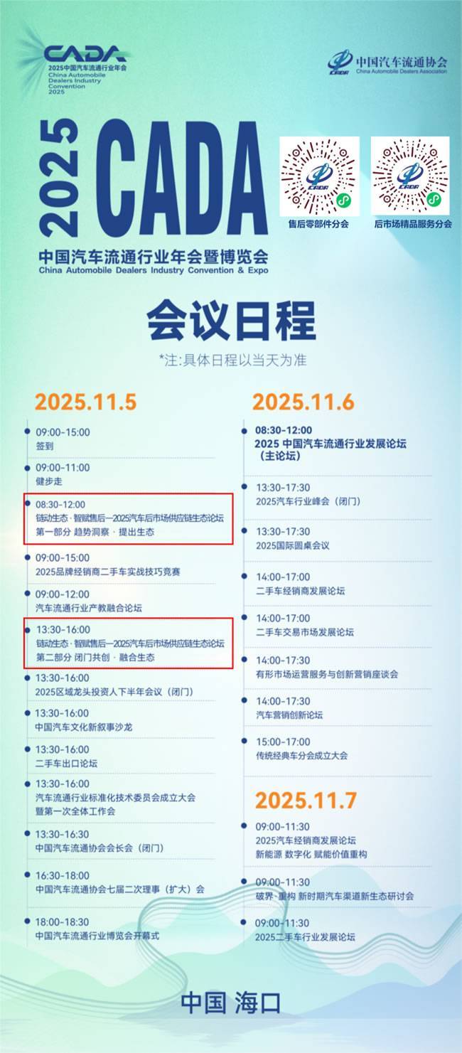 会议即将召开!感谢您百忙之中出席《2025中国汽车流通行业年会暨博览会》的重要分论坛——由中国汽车流通协会售后零部件分会和后市场精品服务分会联合主办的“2025汽车后市场供应链生态论坛”。