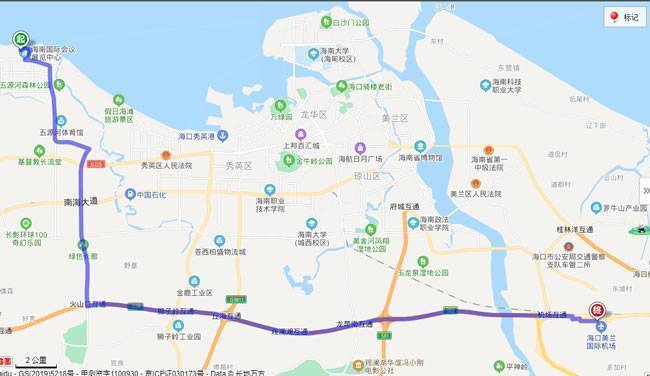 (1)海口美兰国际机场➡️海口万豪酒店,距离约41公里,驾车约46分钟