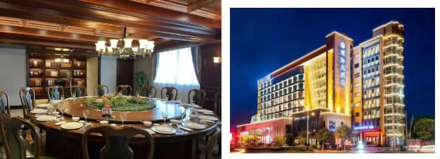 玉环大酒店是一家规模庞大,设施齐全,集商务、娱乐、餐饮、客房于一体的多功能现代化综合性酒店。酒店餐饮区域建筑面积7000多平方米,有1350个餐位,其中有24个装修时尚典雅的包厢和1200多平方米的豪华宴会厅,拥有近200个停车位。