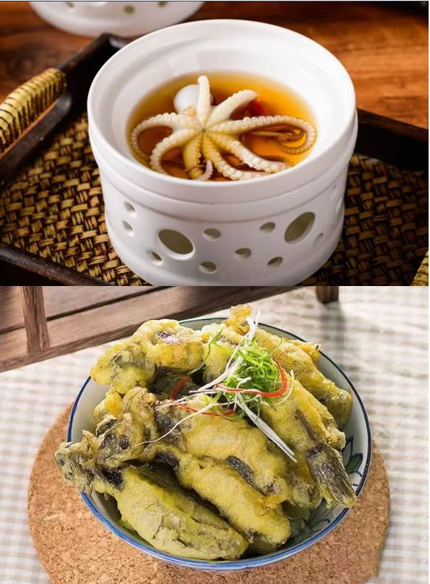 清蒸望潮、白灼虾潺、红烧黄鱼、葱油蛏子...在海边大排档享用刚从海里到餐桌的极致鲜甜!鱼面、敲鱼饼、水潺饼、番薯粉圆、锡饼...感受玉环独特的海岛风味与手工技艺。