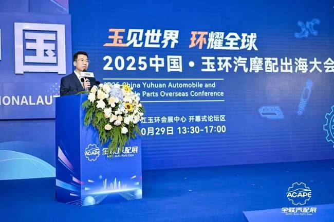 非常荣幸能够出席 2025 第二届中国(玉环)国际汽车零部件交易会,并亲临 “玉” 见世界・“环” 耀全球 2025 中国・玉环汽摩配出海大会。在此,我谨代表全国工商联汽车摩托车配件用品业商会,向本次盛会的召开表示热烈的祝贺!向远道而来的各位同仁、业界伙伴致以诚挚的问候!
