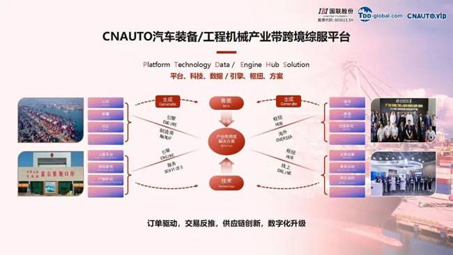 在全球化布局中,国联股份旗下涂多多孵化的 CNAUTO 平台,成为产业带跨境出海的关键载体。作为专注于汽车装备与工程机械产业链的协同跨境服务平台,CNAUTO 以 “国内制造引擎、海外交易枢纽、产业带跨境方案” 为定位,锚定 “1750” 战略规划 —— 依托 1 个核心平台,布局 7 个海外中心与 50 个海外仓,为橡胶、轮胎、汽配、整车及工程机械等产业带客户,提供 “跨境公服 + 交易交付 + 航运航线 + 海外仓 + 产融科技” 的一站式数字化服务,目标打造年产值 1000 亿的跨境产业生态。