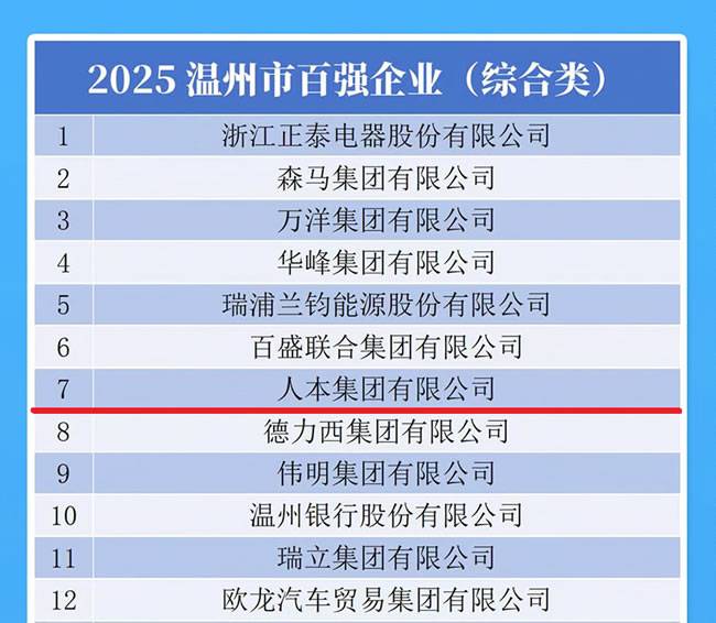 【人本集团荣获2025年温州市“综合百强”与“制造业五十强”】