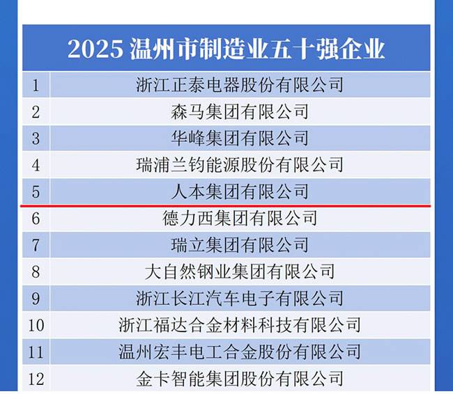 5、人本集团荣获2025年温州市“综合百强”与“制造业五十强”