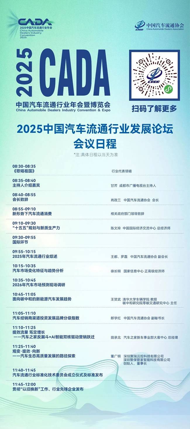 【2025中国汽车流通行业发展论坛(主论坛)会议日程揭晓!】