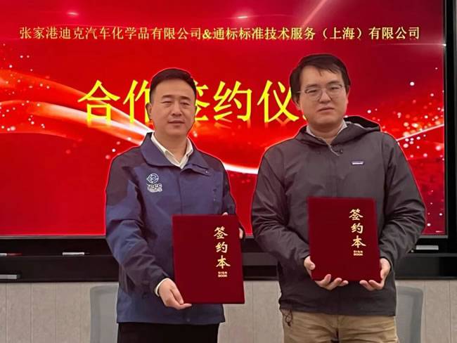 近日,张家港迪克汽车化学品有限公司(迪克化学)与通标标准技术服务有限公司(SGS)签署战略合作协议,以“科学、公正、诚信、共赢”为原则,推动车用精细化学品与新能源化工材料检测及技术服务规范化发展。
