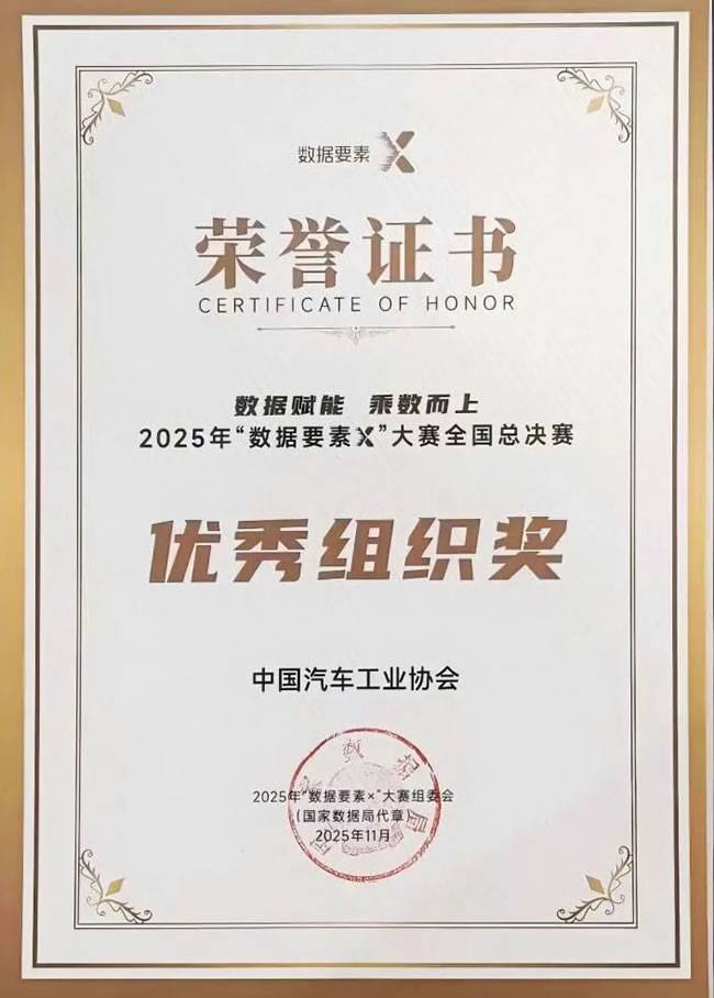 【中国汽车工业协会荣获2025年“数据要素×”大赛全国总决赛优秀组织奖】